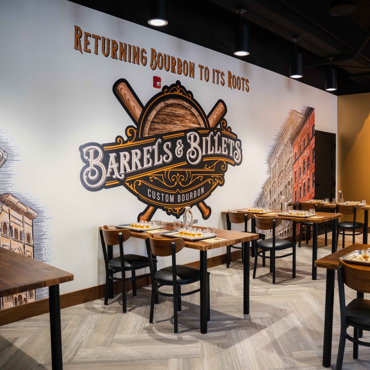 Owned by Hillerich & Bradsby Co. (H&B), Barrels and Billets is open to the public and offers guests a hands-on, interactive Bourbon experience. Visitors can blend their own Bourbon recipe using six different wood-finished Bourbons to create their own custom flavor profile.